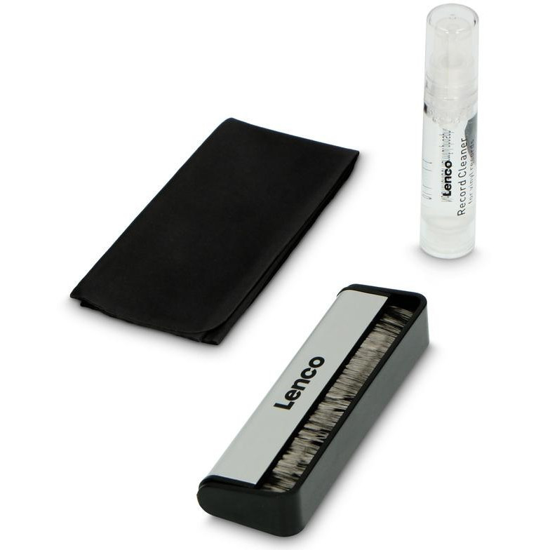 The Lenco TTA-3in1 consists of a carbon fibre plate cleaning brush, supply of 10ml cleaning fluid and an antistatic cleaning cloth to thoroughly clean your records.