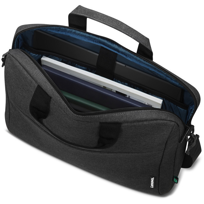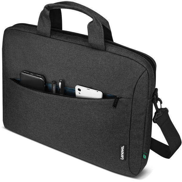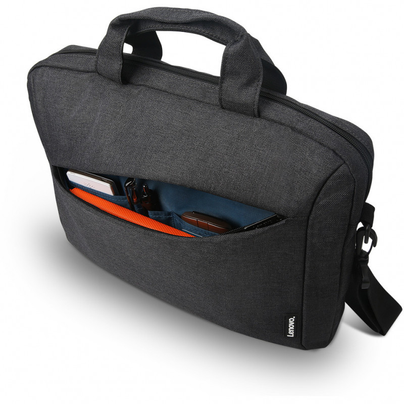 "Lenovo T210. Case type: Toploader bag, Maximum screen size: 39.6 cm (15.6""), Carrying handle(s), Shoulder strap. Weight: 435 g. Surface coloration: Monochromatic"\n"The Lenovo 15.6"" Laptop Casual Toploader's compact design style is perfect for work and school. It features a durable snow yarn polyester fabric and streamlined design with a padded interior to protect notebooks and important items. Quick access zip front pocket for added storage. A fully adjustable shoulder straps make it comfortable for all-day use."