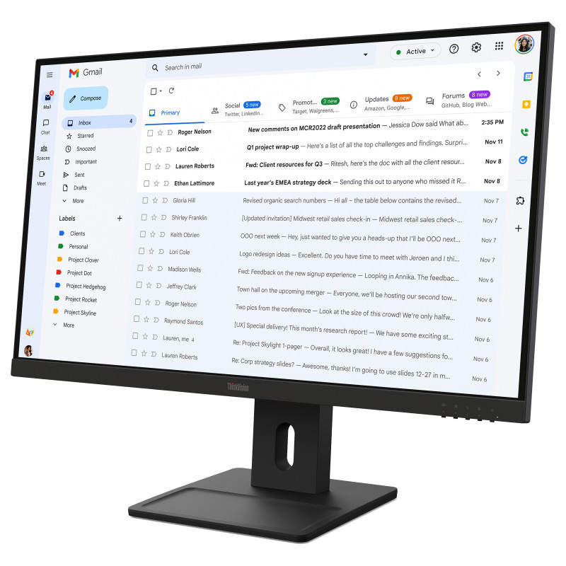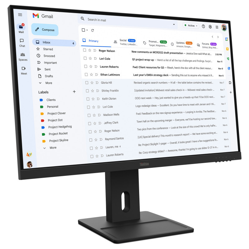 "Lenovo ThinkVision E27-40 Monitor. Display diagonal: 68.6 cm (27""), Display resolution: 1920 x 1080 pixels, HD type: Full HD, Display technology: LCD, Response time: 6 ms, Native aspect ratio: 16:9, Viewing angle, horizontal: 178°, Viewing angle, vertical: 178°. Built-in speaker(s). VESA mounting, Height adjustment. Product colour: Black"\n