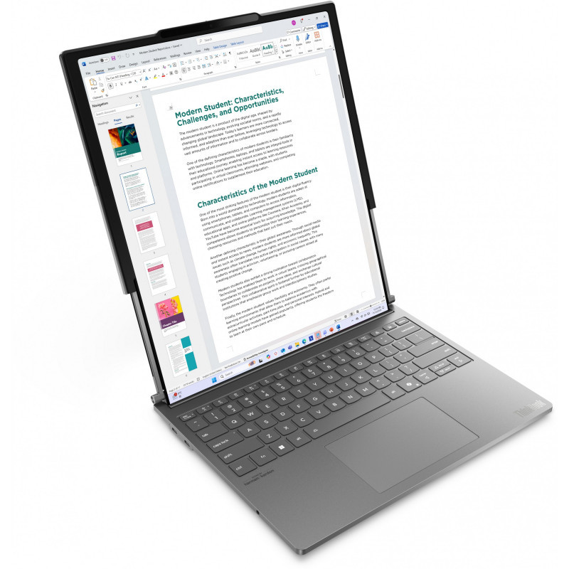 "Lenovo ThinkBook Plus G6 Rollable Copilot+ PC. Product type: Laptop, Form factor: Convertible (Rollable screen). Processor family: Intel Core Ultra 7, Processor model: 258V. Display diagonal: 42.4 cm (16.7""), Display resolution: 2000 x 2350 pixels. Internal memory: 32 GB, Internal memory type: LPDDR5x-SDRAM. Total storage capacity: 1 TB, Storage media: SSD. On-board graphics card model: Intel Arc Graphics 140V. Operating system installed: Windows 11 Pro. Product colour: Grey. Weight: 1.69 kg"\n