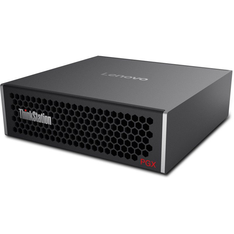 "Lenovo ThinkStation PGX. Processor model: GB10. Internal memory: 128 GB, Internal memory type: LPDDR5x-SDRAM. Total storage capacity: 4 TB, Storage media: SSD. On-board graphics card model: NVIDIA Blackwell. Wi-Fi. Operating system installed: DGX OS. Power supply: 240 W. Chassis type: Mini Tower. Product type: Mini PC. Weight: 1.2 kg. Product colour: Black"\n