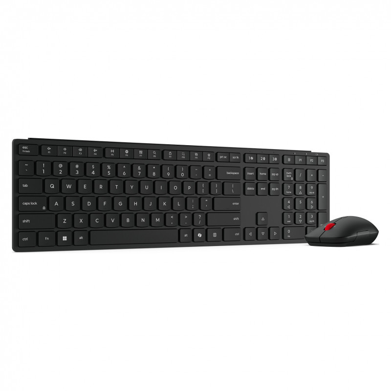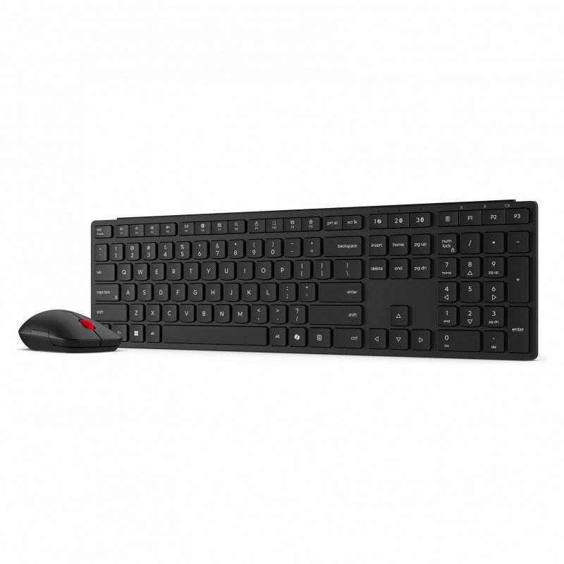 "Lenovo 4X31S04814. Keyboard form factor: Full-size (100%). Keyboard style: Straight. Connectivity technology: Wireless, Device interface: RF Wireless + Bluetooth, Recommended usage: Office. Product colour: Black. Mouse included"\n"Crafted for professionals, keyboard &mouse deliver unrivaled functionality, comfort, and style. The sleek, responsive keyboard ensures a silent typing experience, while the standard-sized, ambidextrous silent mouse offers ergonomic comfort and precise control. Seamlessly connect to up to 3 devices via Bluetooth 5.3 and 2.4GHz for rock-solid reliability—perfect for boosting productivity across all your devices.