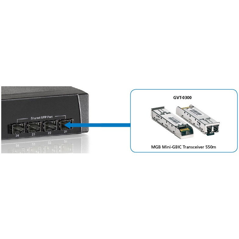 LevelOne GVT-0300 can be used in any LevelOne switch or converter that can accommodate SFP (Mini-GBIC) transceivers.