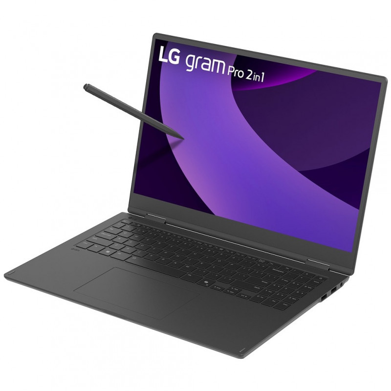 "LG Gram Pro 16TB90TP. Product type: Hybrid (2-in-1), Form factor: Convertible (Folder). Processor family: Intel Core Ultra 7, Processor model: 255H. Display diagonal: 40.6 cm (16""), HD type: WQXGA+, Display resolution: 2880 x 1800 pixels, Touchscreen. Internal memory: 16 GB, Internal memory type: LPDDR5x-SDRAM. Total storage capacity: 1 TB, Storage media: SSD. On-board graphics card model: Intel Arc 140T. Operating system installed: Windows 11 Pro. Product colour: Black"\n