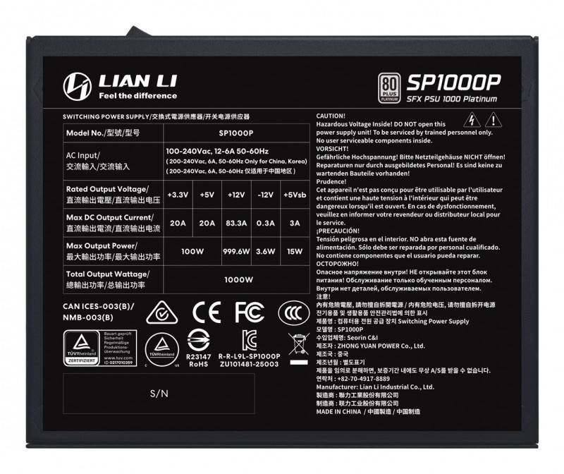 Lian Li SP1000P maitinimo blokas 1000 W 24-pin ATX SFX Juoda