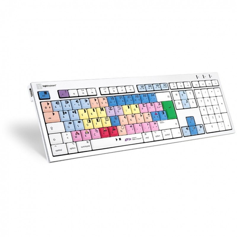 "Logickeyboard LKB-MCOM4-CWMU-FR. Keyboard form factor: Full-size (100%). Keyboard style: Straight. Connectivity technology: Wired, Device interface: USB, Keyboard key switch: Mechanical, Keyboard layout: AZERTY. Cable length: 1.5 m. USB hub, Recommended usage: Office. Product colour: Multicolour"\n"Meet ALBA - our dedicated Apple® shortcut keyboard