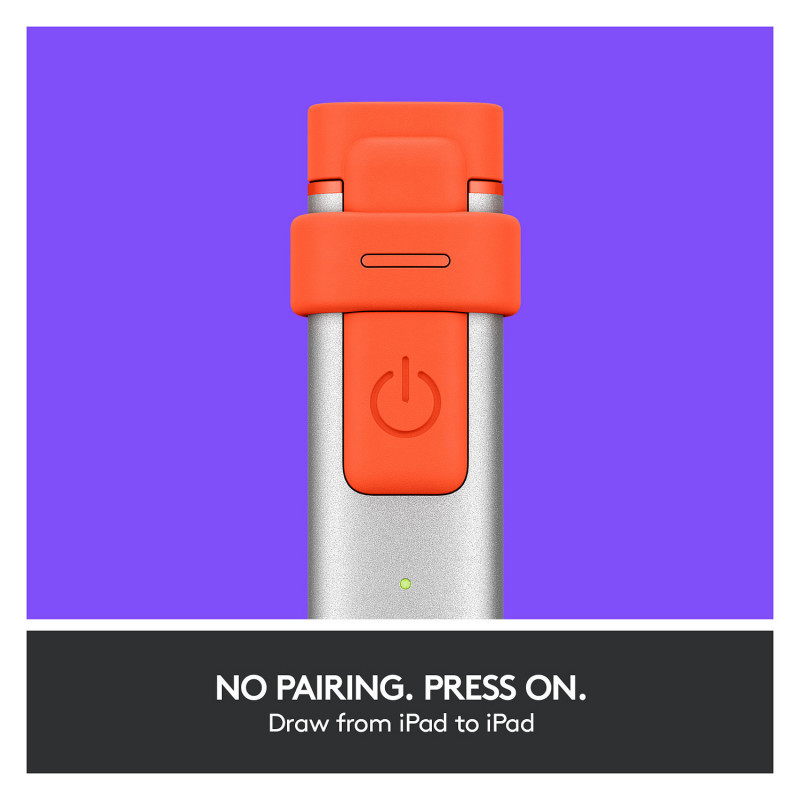 "Logitech Crayon. Device compatibility: Tablet, Brand compatibility: Apple, Product colour: Orange. Weight: 20 g, Width: 12 mm, Depth: 8 mm. Quantity per pack: 1 pc(s), Package width: 9.5 mm, Package depth: 38 mm. Packaging content: Logitech Crayon. Battery capacity: 0.3 Wh"\n"Logitech Crayon is a versatile, pixel-precise digital pencil that elevates the way teachers teach and students learn in classrooms. Crayon brings another dimension to learning, helping students and teachers unlock the power of hundreds of educational apps. Logitech Crayon is shaped to fit comfortably in hands of all sizes and tough enough be slipped in and out of bags and used in the classroom. With 4 ft drop protection, prey-resistant, replaceable parts, and a unique flat shape that ensures Logitech Crayon doesn’t roll off desks or tables, Crayon is the perfect learning tool."