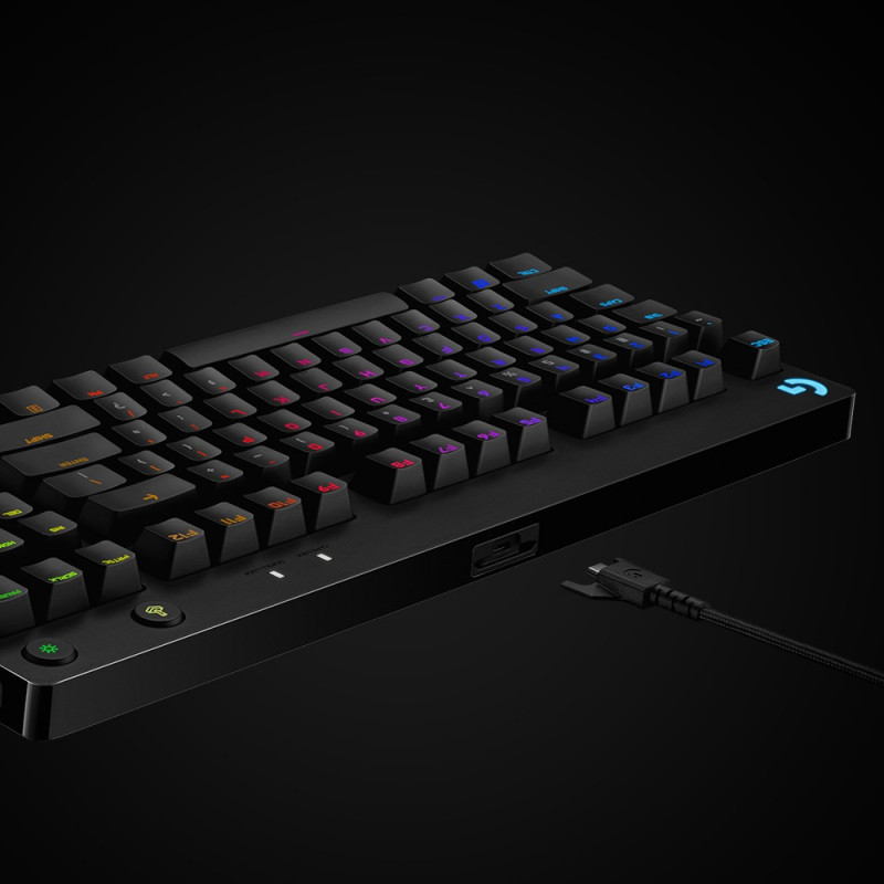 "Logitech G G PRO Mechanical Gaming Keyboard. Keyboard form factor: Tenkeyless (80 - 87%). Keyboard style: Straight. Connectivity technology: Wired, Device interface: USB, Keyboard key switch: Mechanical, Keyboard layout: QWERTY. Backlight type: RGB LED. Cable length: 1.8 m. Recommended usage: Gaming. Product colour: Black"\n