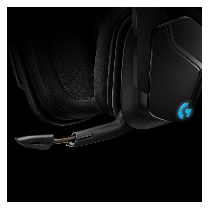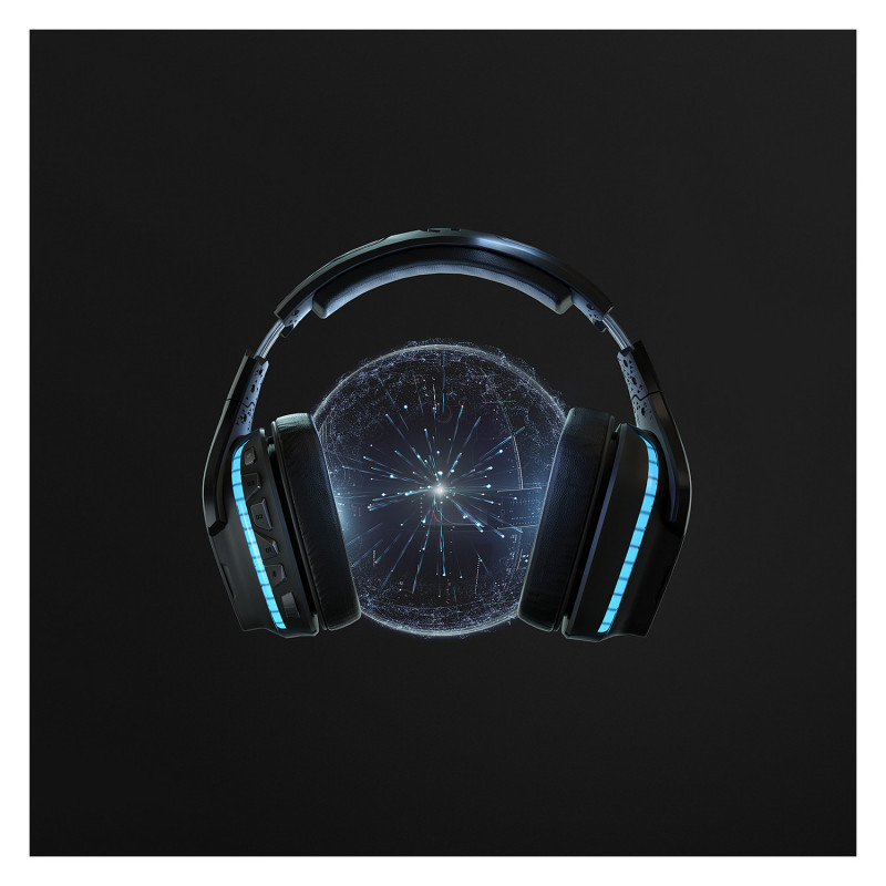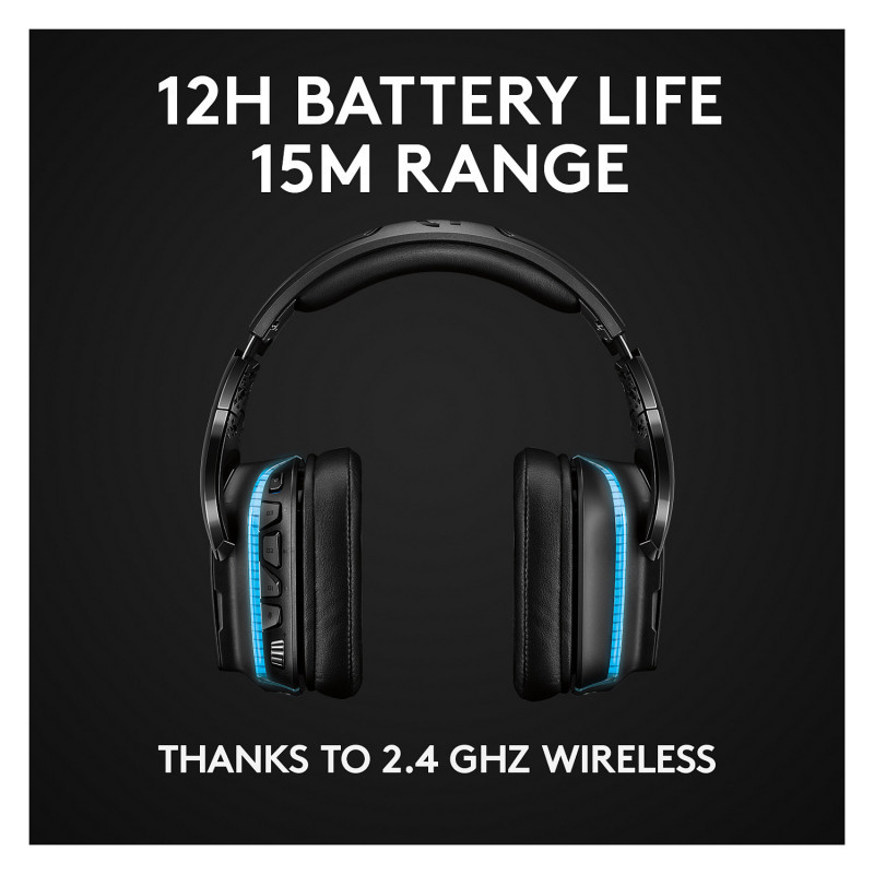 "Logitech G G935 Gaming Headset. Product type: Headset. Connectivity technology: Wireless. Recommended usage: Gaming. Headphone frequency: 20 - 20000 Hz. Wireless range: 20 m. Cable length: 1.5 m. Weight: 379 g. Product colour: Black"\n"G935 is the ultimate wireless gaming headset, enhanced with the most advanced Logitech audio technology. Hear more detail with large 50 mm PRO-G drivers, made of woven hybrid mesh designed to reduce distortion. LIGHTSYNC RGB lighting is fully customizable and reacts to in-game action on supported games. For maximum immersion, DTS Headphone:X 2.0 surround sound creates precise in-game positional awareness. Hear enemies sneaking up behind you, sense air attacks or special-ability cues, and enjoy the full cinematic experience of your favorite games. Additional gaming features include a large 6 mm flip-to-mute mic, programmable G-Keys on the headset, and the ability to tune EQ settings and more with Logitech G HUB software."