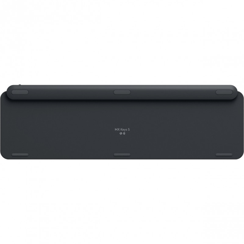 "Logitech MX Keys S. Keyboard form factor: Full-size (100%). Keyboard style: Straight. Connectivity technology: Wireless, Device interface: RF Wireless + Bluetooth, Keyboard key switch: Scissor key switch, Keyboard layout: QWERTY. Backlight type: LED. Recommended usage: Universal. Product colour: Graphite"\n"Master Your Flow