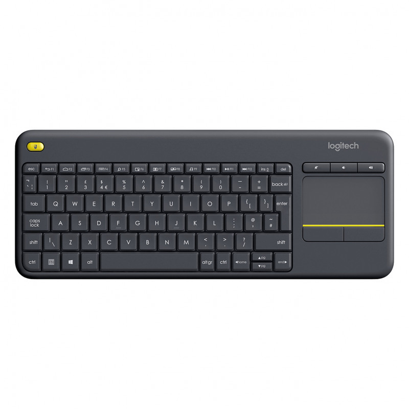 "Logitech Wireless Touch Keyboard K400 Plus. Keyboard form factor: Mini. Keyboard style: Straight. Connectivity technology: Wireless, Device interface: RF Wireless, Keyboard layout: QWERTY, Recommended usage: Home. Product colour: Black"\n