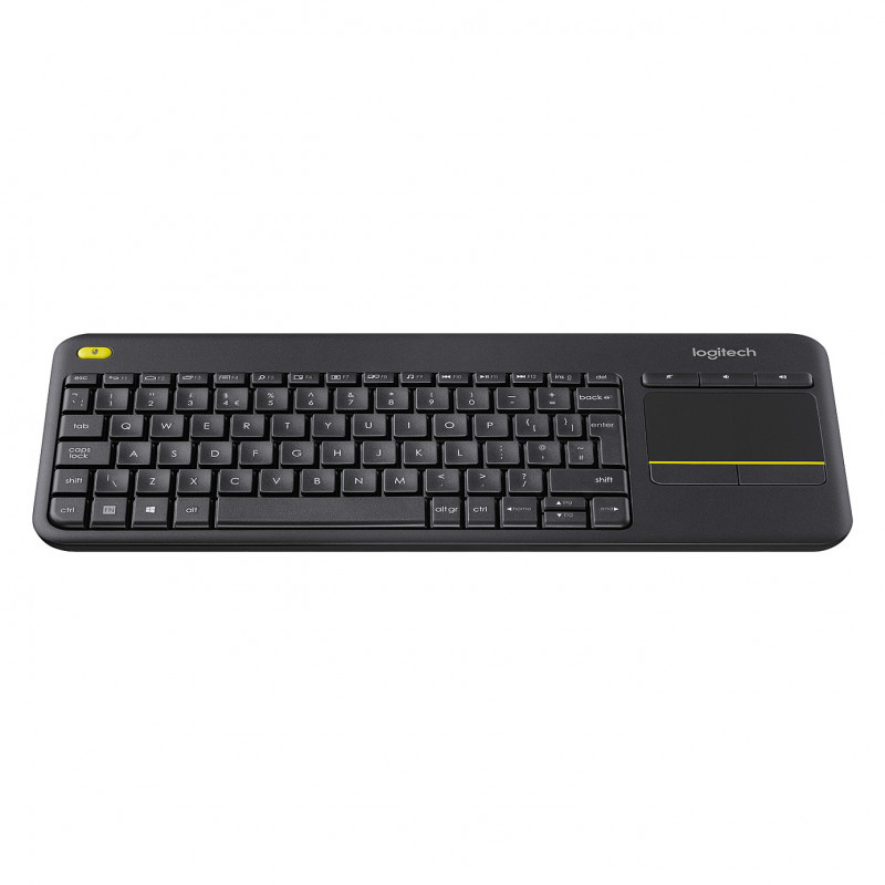 "Logitech Wireless Touch Keyboard K400 Plus. Keyboard form factor: Full-size (100%). Keyboard style: Straight. Connectivity technology: Wireless, Device interface: RF Wireless, Keyboard layout: QWERTZ, Recommended usage: Universal. Product colour: Black"\n