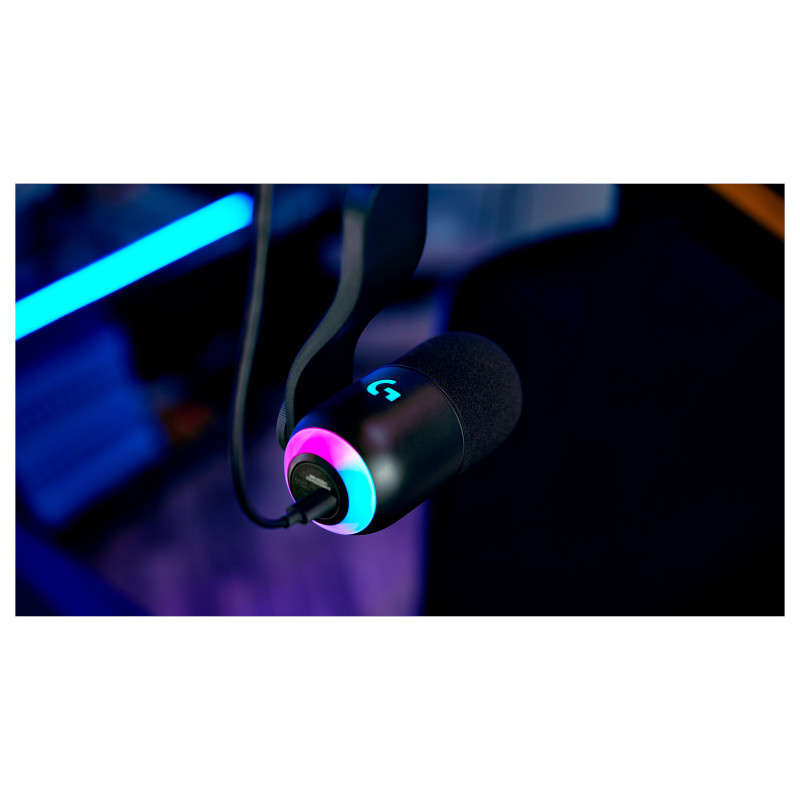 "Logitech G Yeti GX. Type: Table microphone, Microphone frequency: 60 - 18500 Hz, Microphone Total Harmonic Distortion (THD): 1%. Connectivity technology: Wired, Device interface: USB. Product colour: Black, White, Control type: Buttons, Rotary, Cable length: 2 m. Power source: USB. Sustainability certificates: CarbonNeutral, Forest Stewardship Council (FSC)"\n"PLAY WITH DYNAMIC SOUND