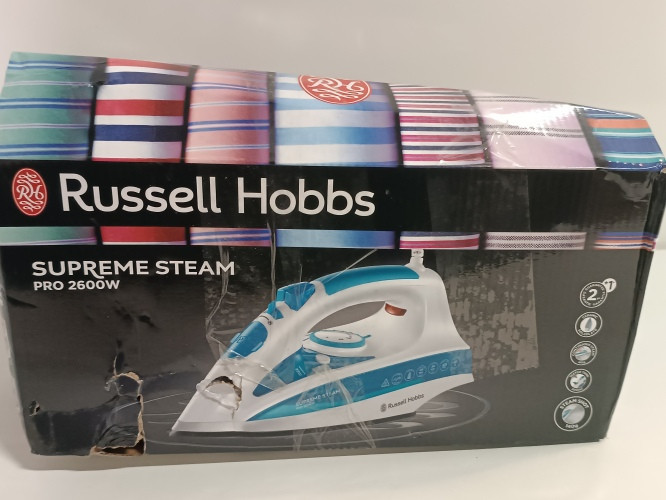 Ecost prekė po grąžinimo, Russell Hobbs garų lygintuvas Supreme Steam Pro (2600 W, 140 g/min papildomo garo pliūpsnis, keraminis padas, savaiminio valymo ir purškiamo vandens funkcija, lašėjimo sustabdymo funkcija, vertikalus garų srautas), lygintuvas 20562-56