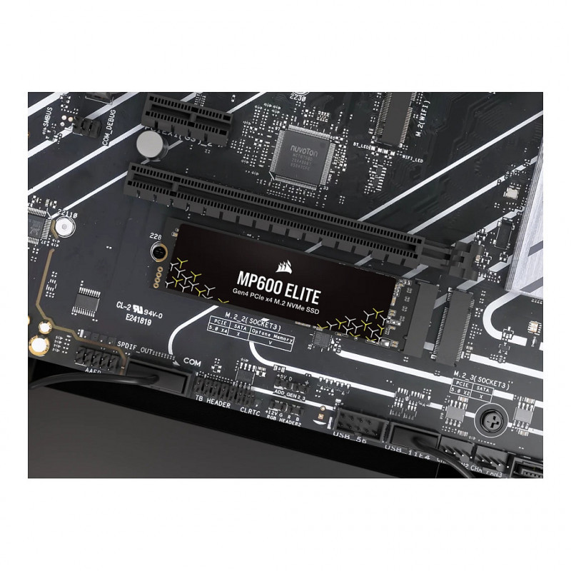 "Corsair MP600 ELITE. SSD capacity: 1 TB, SSD form factor: M.2, Component for: PC"\n"The CORSAIR MP600 ELITE provides PC-boosting PCIe 4.0 storage performance capable of reaching sequential read speeds of up to 7,000MB/sec and writes of up to 6,500MB/sec.