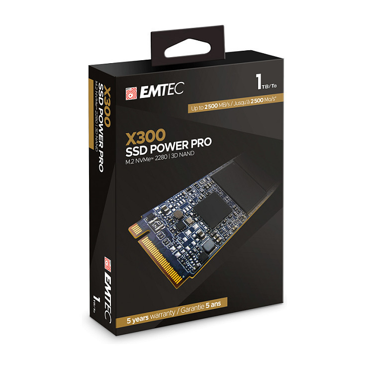 "Emtec X300. SSD capacity: 1 TB, SSD form factor: M.2, Read speed: 2500 MB/s, Write speed: 2000 MB/s, Component for: PC/Laptop"\n"Ideal for ultrabooks, desktop, workstations, And high-performance computing."