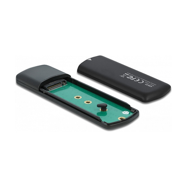"DeLOCK External USB Type-C Combo Enclosure for M.2 NVMe PCIe or SATA SSD. Product type: SSD enclosure. Number of storage drives supported: 1, Storage drive size: M.2, Supported storage drive interfaces: PCI Express, Serial ATA. Data transfer rate: 10 Gbit/s. Product colour: Black. USB connector type: USB Type-C"\n"This enclosure by Delock enables the installation of an M.2 PCIe NVMe SSD or SATA M.2 SSD in 2280, 2260, 2242 and 2230 format. It can be connected via USB to the PC or laptop. The robust metal housing ensures an optimum temperature of the memory.
