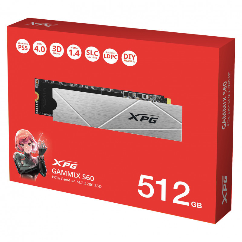 "XPG GAMMIX S60. SSD capacity: 512 GB, SSD form factor: M.2, Read speed: 4700 MB/s, Write speed: 1700 MB/s, Component for: PC/Laptop"\n"Absolutely Dominate the Competition