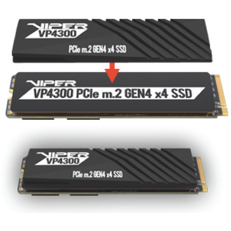 "Patriot Memory VP4300. SSD capacity: 2 TB, SSD form factor: M.2, Read speed: 7400 MB/s, Write speed: 6800 MB/s"\n"Evolutionarily built with a cutting-edge PCIe Gen4 x4 NVMe controller, the Viper VP4300 solid state drive is pushing expectations with incredibly high-speed Read and Write transfers, perfect for all tech enthusiasts. Equipped with a DDR4 DRAM cache, the VP4300 enables higher timings compared to PCIe Gen3 x4 SSDs, resulting in blazingly fast quick start-up times. By providing superior reliability across data-heavy tasks and intense action-packed games, the VP4300 is the optimal choice for hardcore gamers. Designed with the best-in-class heatshield designs, the VP4300series will include 2 new, low-profile heatshields.