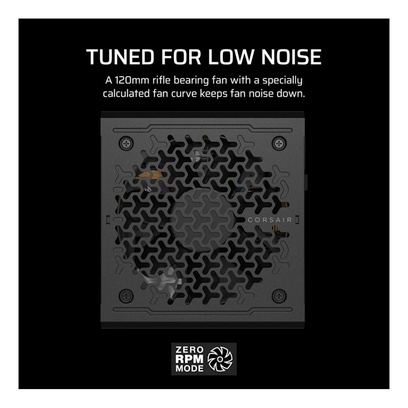 "Corsair RMe Series RM650e. Total power: 650 W, AC input voltage: 100 - 240 V, AC input frequency: 47 - 63 Hz. Motherboard power connector: 24-pin ATX, Cabling type: Fully-Modular. Purpose: PC, Power supply unit (PSU) form factor: ATX, 80 PLUS certification: 80 PLUS Gold. Product colour: Black, Cooling type: Active, Fan diameter: 12 cm. Compliance certificates: CE, RoHS, UKCA"\n"CORSAIR RMe Series Fully Modular Low-Noise Power Supplies include a dedicated 12V-2x6 GPU power cable, ATX 3.1 certification and PCIe 5.1 compliance, and Cybenetics™ Gold rated efficiency for a quiet, reliable build. The RMe PSUs' compact size also allow for easier cable management.