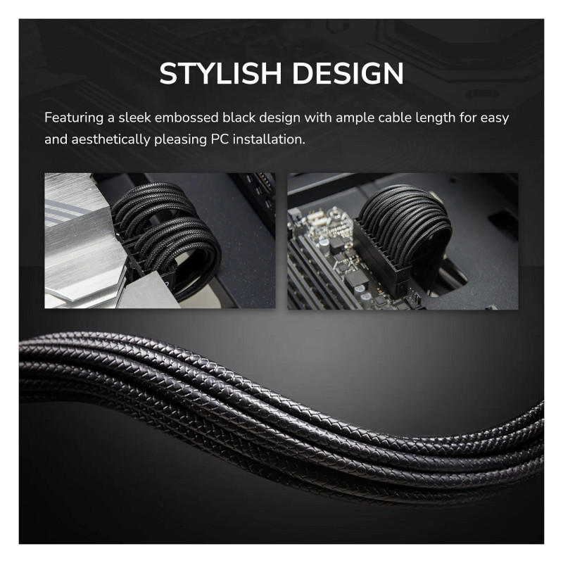Featuring a sleek embossed black design with ample cable length for easy and aesthetically pleasing PC installation.