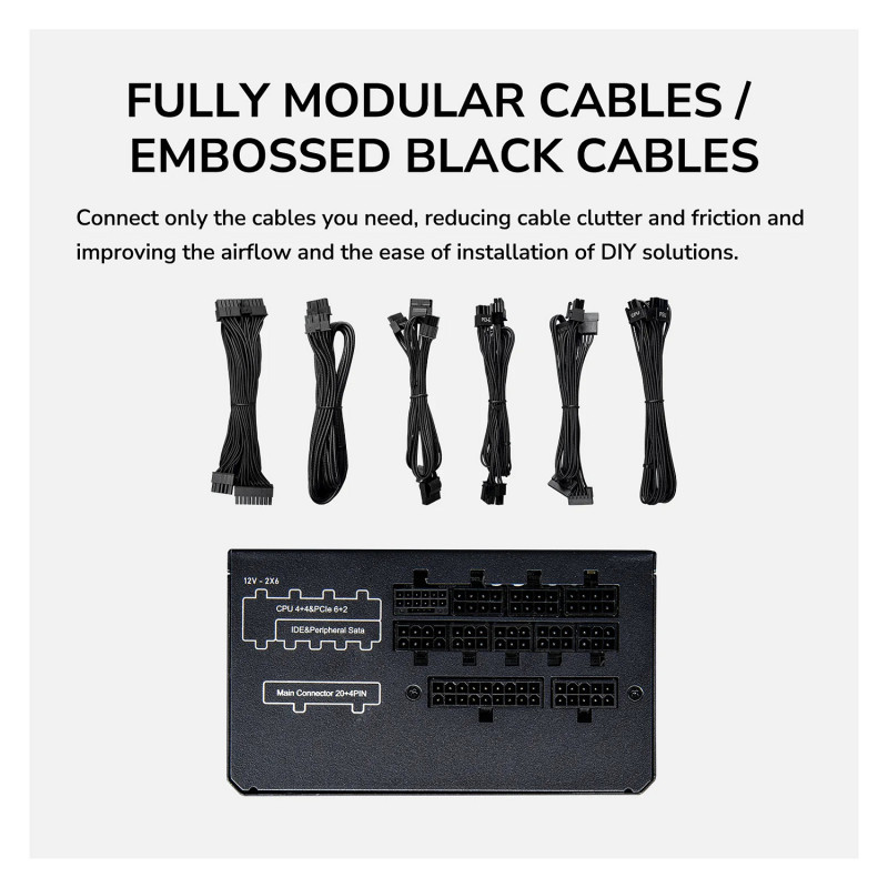 Connect only the cables you need, reducing cable clutter and friction and improving the airflow and the ease of installation of DIY solutions.
