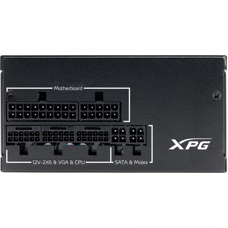 "XPG PYMCORE 750w SFX GOLD Power Supply. Total power: 750 W, AC input voltage: 100 - 240 V, AC input frequency: 50/60 Hz. Motherboard power connector: 24-pin ATX, Cabling type: Fully-Modular. Purpose: PC, Power supply unit (PSU) form factor: ATX, 80 PLUS certification: 80 PLUS Gold. Product colour: Black, Cooling type: Active, Fan diameter: 9.2 cm. Width: 100 mm, Depth: 125 mm, Height: 63.5 mm"\n"PYMCORE SFX