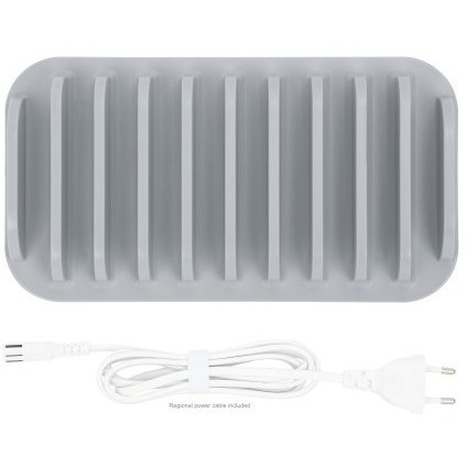 "Manhattan Charging Station, 10x Ports: 3x USB-C (up to 18W PD) and 7x USB-A (up to 12W), 120W Total Output, White/Grey, Three Year Warranty. Type: Desktop mounted, Material: Plastic, Product colour: White. AC input voltage: 100 - 240 V, AC input frequency: 50 - 60 Hz, Maximum power: 120 W. Width: 128 mm, Depth: 235 mm, Height: 83 mm. Package weight: 848 g. Quantity per pack: 1 pc(s)"\n"Desktop Charging Station - smart and fast power for USB-C and USB-A devices
