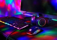 MANHATTAN RGB LED Over-Ear USB Gaming Headset, Wired, USB-A Plug, Microphone, Integrated Volume Control, 2.0m, Black, 180696