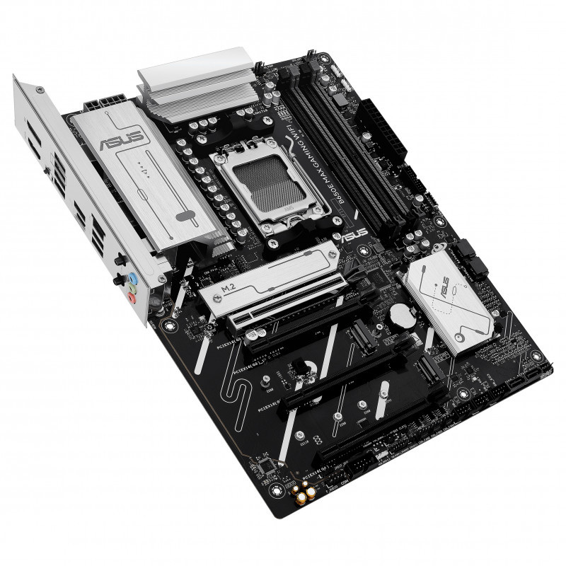 "ASUS B650E MAX GAMING WIFI. Processor manufacturer: AMD, Processor socket: Socket AM5, Compatible processor series: AMD Ryzen 7000 Series, AMD Ryzen 8000 Series, AMD Ryzen 9000 Series. Supported memory types: DDR5-SDRAM, Maximum internal memory: 256 GB, Memory slots type: DIMM. Supported storage drive interfaces: M.2, PCI Express 5.0, SATA III, Supported storage drive types: HDD & SSD, RAID levels: 0, 1, 5, 10. Ethernet interface type: 2.5 Gigabit Ethernet, Top Wi-Fi standard: Wi-Fi 6E (802.11ax), Wi-Fi standards: Wi-Fi 6E (802.11ax). Component for: PC, Motherboard form factor: ATX, Motherboard chipset family: AMD"\n"ASUS B650E series motherboards are expertly engineered to unleash the full potential of AMD Ryzen 9000 & 8000 & 7000 Series processors. Boasting a robust power design, comprehensive cooling solutions and intelligent tuning options, B650E MAX GAMING WIFI provides users and PC DIY builders with a range of performance optimizations via intuitive software and firmware features. This platform delivers the power and connectivity that advanced AI PC applications demand.