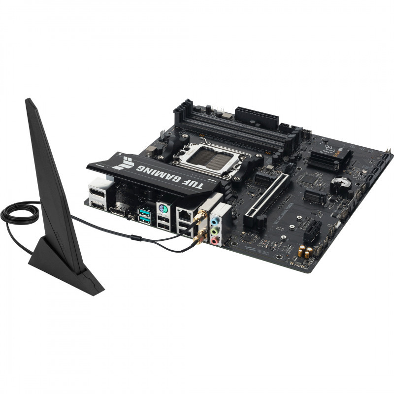 "ASUS TUF GAMING A620AM-PLUS WIFI. Processor manufacturer: AMD, Processor socket: Socket AM5, Compatible processor series: AMD Ryzen 7000 Series, AMD Ryzen 8000 Series, AMD Ryzen 9000 Series. Supported memory types: DDR5-SDRAM, Maximum internal memory: 256 GB, Memory slots type: DIMM. Supported storage drive interfaces: M.2, SATA III, Supported storage drive types: HDD & SSD, RAID levels: 0, 1, 5, 10. Ethernet interface type: 2.5 Gigabit Ethernet, Top Wi-Fi standard: Wi-Fi 6 (802.11ax), Wi-Fi standards: Wi-Fi 6 (802.11ax). Component for: PC, Motherboard form factor: micro ATX, Motherboard chipset family: AMD"\n"TUF GAMING
