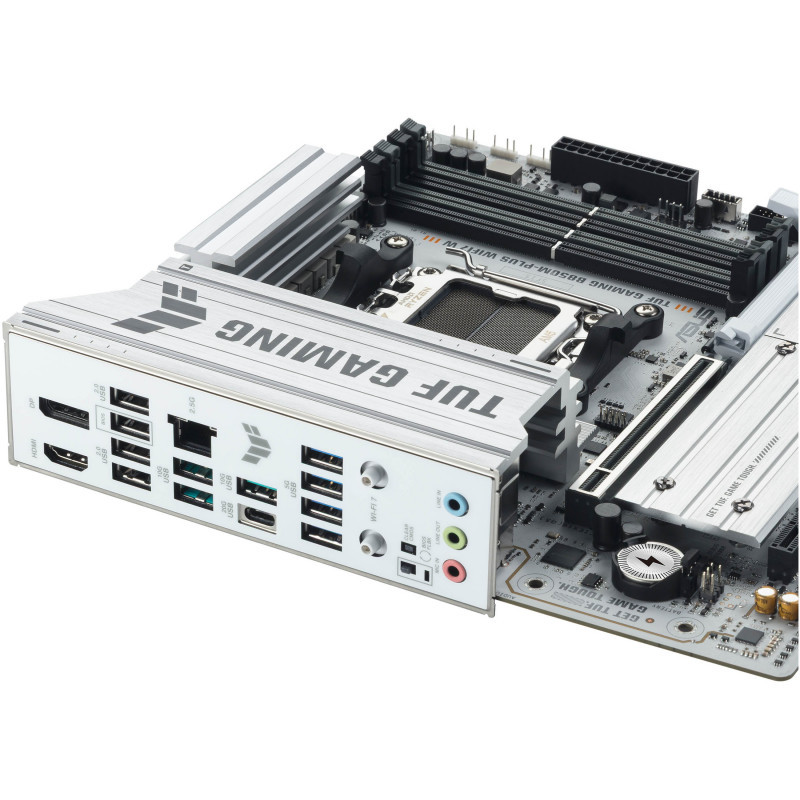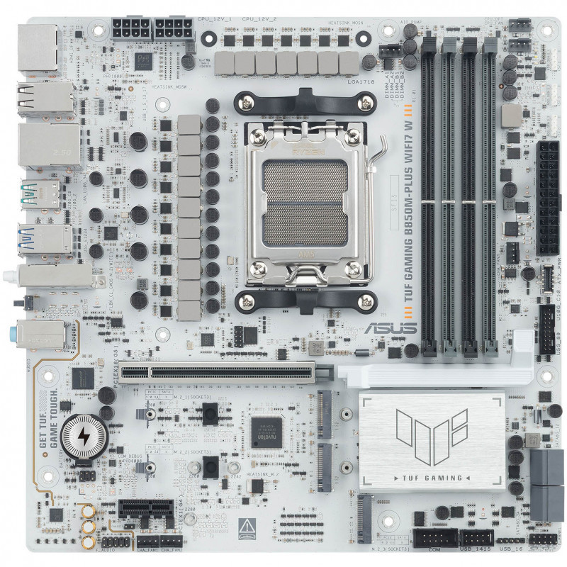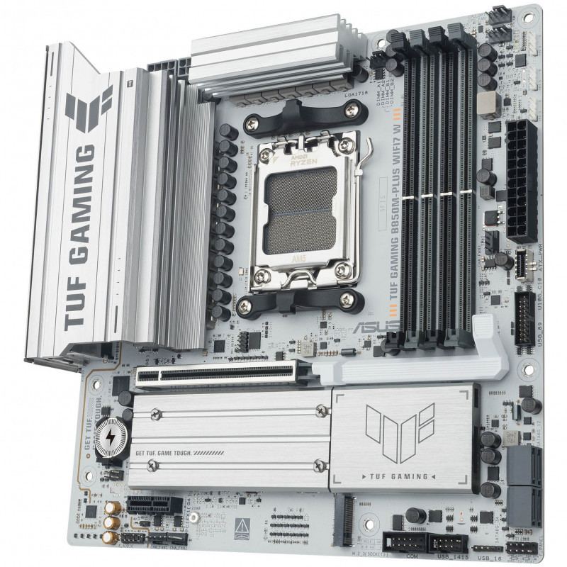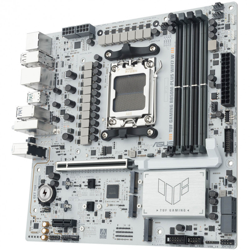 ASUS TUF GAMING B850M-PLUS WIFI7 W takes all the essential elements of the latest AMD Ryzen™ processors and combines them with game-ready features and proven durability. Engineered with military-grade components, an upgraded power solution and a comprehensive cooling system, this motherboard goes beyond expectations with rock-solid and stable performance for marathon gaming. TUF GAMING motherboards also undergo rigorous endurance testing to ensure that they can handle conditions where others may fail. This platform delivers the power and connectivity that advanced AI PC applications demand.