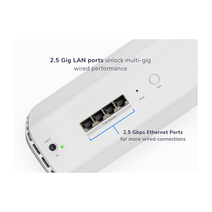2.5 Gbps†† Ethernet ports unlock unbeatable speed and reliability for wired connections and 2.5 Gbps wired backhaul option