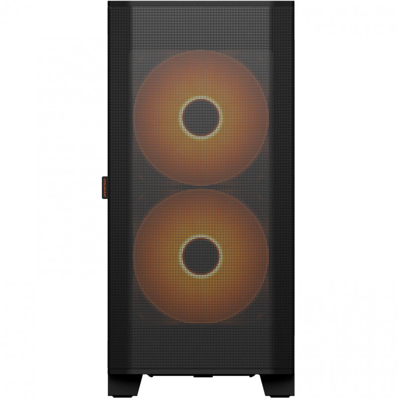 "COUGAR Midi Tower Case, Airface FLO, ARGB, Black. Form factor: Midi Tower, Type: PC, Product colour: Black. Front fans installed: 2x 180 mm, Front fans diameters supported: 180 mm, Rear fans installed: 1x 120 mm. Supported HDD sizes: 2.5,3.5"". Width: 240 mm, Depth: 480 mm, Height: 509 mm. Package width: 585 mm, Package depth: 586 mm, Package height: 310 mm"\n"Classic Design. Powerful Cooling.