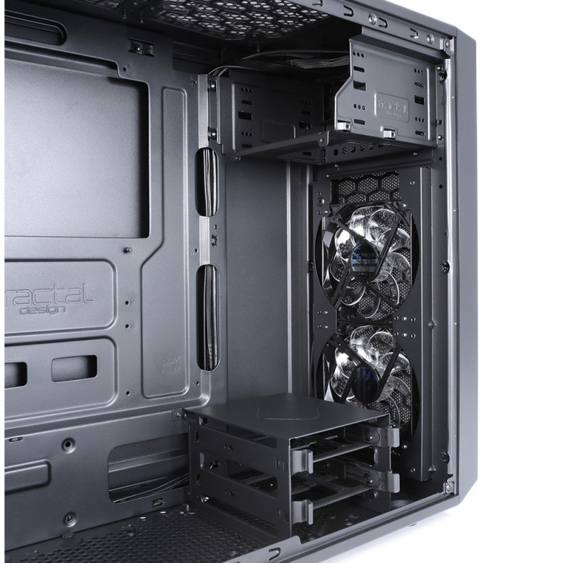 "Fractal Design Focus G. Form factor: Midi Tower, Type: PC, Product colour: Black. Power supply location: Bottom, Supported power supply form factors: ATX. Front fans installed: 2x 120 mm, Front fans diameters supported: 120,140 mm, Rear fans diameters supported: 120 mm. Supported HDD sizes: 2.5,3.5"". Width: 205 mm, Depth: 464 mm, Height: 444 mm"\n"The new Focus series from Fractal Design is the cornerstone for your PC build, showcasing the hardware aesthetics at the heart of your system with elegant accents and sophisticated style.