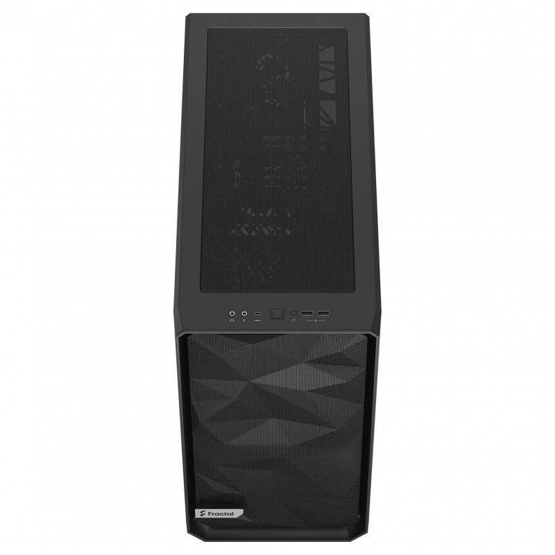 "Fractal Design Meshify 2. Form factor: Tower, Type: PC, Product colour: Black. Power supply location: Bottom, Supported power supply form factors: ATX. Front fans installed: 2x 140 mm, Front fans diameters supported: 120,140 mm, Rear fans installed: 1x 140 mm. Width: 240 mm, Depth: 542 mm, Height: 474 mm. Package width: 542 mm, Package depth: 634 mm, Package height: 324 mm"\n"The new Meshify 2 is a classic evolved with focus on distinctive design, spacious interior and rugged good looks.