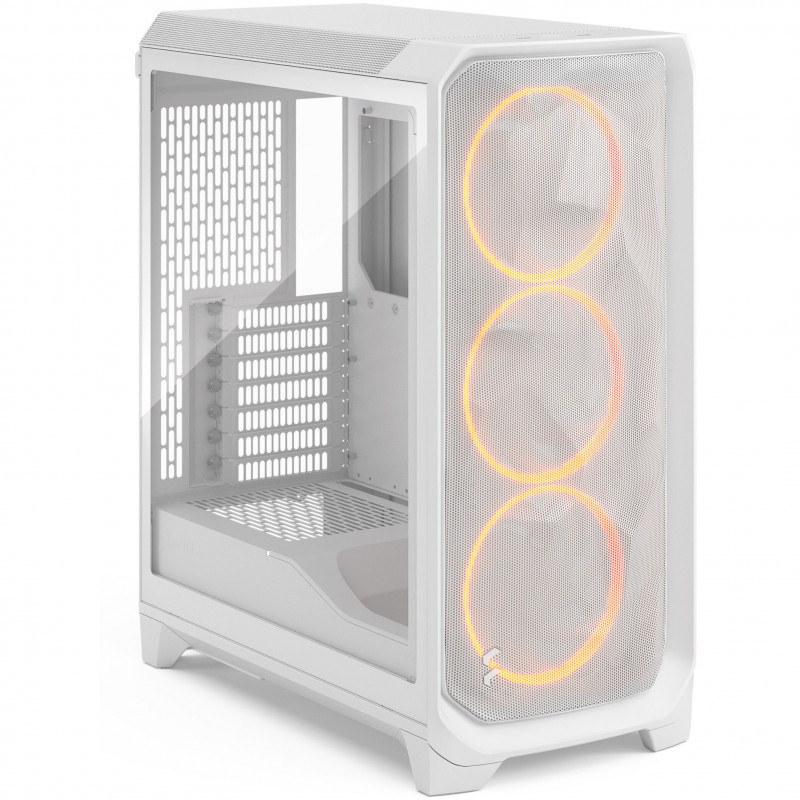 "Fractal Design Meshify 3 White RGB TG Clear Tint. Type: PC, Product colour: White, Supported motherboard form factors: ATX, EATX, micro ATX, Mini-ITX. Power supply location: Bottom, Supported power supply form factors: ATX. Front fans installed: 3x 140 mm, Front fans diameters supported: 120,140 mm, Rear fans diameters supported: 120 mm. Supported HDD sizes: 2.5,3.5"", SSD form factor: 2.5"". Width: 229 mm, Depth: 433 mm, Height: 507 mm"\n"Experience advanced cooling and expressive, aerodynamic design. An evolution of our mesh performance series, Meshify 3 offers performance-boosting engineering upgrades, three powerful Momentum fans, and next-level atmospheric lighting in Ambience Pro RGB versions.