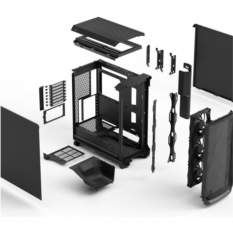 "Fractal Design Meshify 3 Black Solid. Type: PC, Product colour: Black, Supported motherboard form factors: ATX, EATX, micro ATX, Mini-ITX. Supported power supply form factors: ATX. Front fans installed: 3x 140 mm, Front fans diameters supported: 120,140 mm, Rear fans diameters supported: 120 mm. Supported HDD sizes: 2.5,3.5"", SSD form factor: 2.5"". Width: 229 mm, Depth: 433 mm, Height: 507 mm"\n"Experience advanced cooling and expressive, aerodynamic design. An evolution of our mesh performance series, Meshify 3 offers performance-boosting engineering upgrades, three powerful Momentum fans, and next-level atmospheric lighting in Ambience Pro RGB versions.