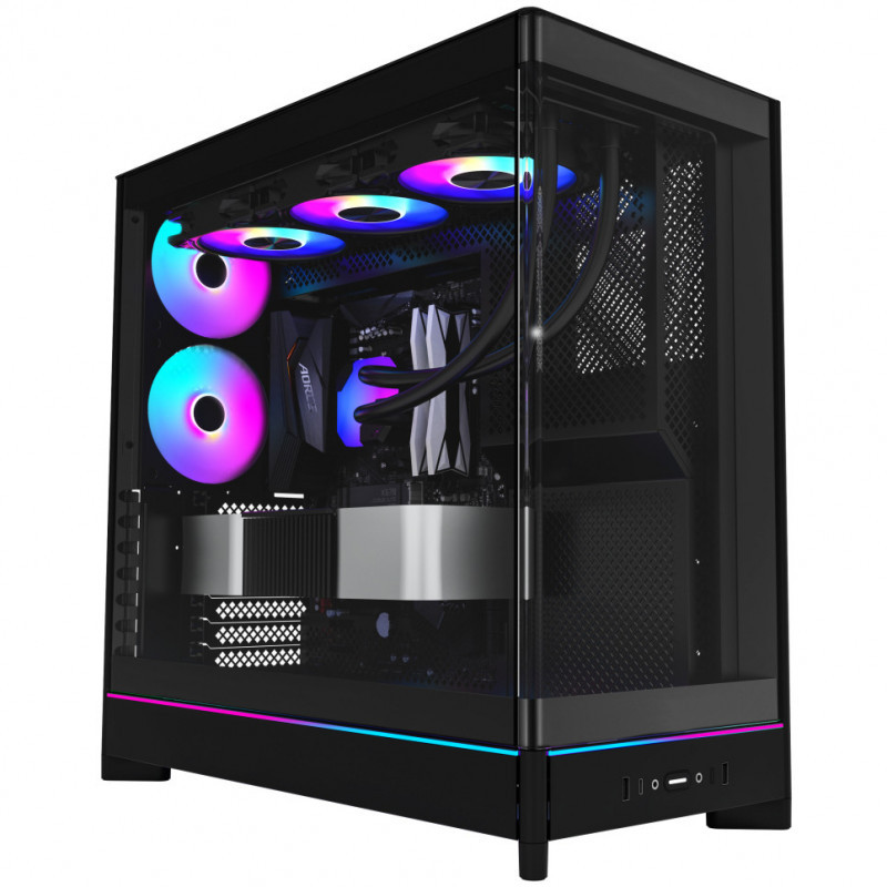 The 8° curved glass front panel offers a minimal visual interruption, delivering a wide panoramic view that showcases your build with enhanced clarity and style.