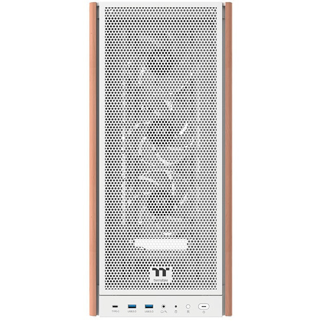 S370 WS Snow Mid Tower Chassis is an ATX case featuring a mesh front panel with wood accents and comes with four CT120 PWM fans pre-installed, three at the front and one at the rear.