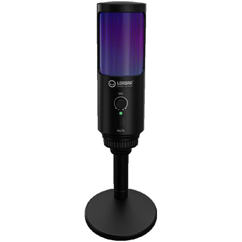LORGAR SMP40, RGB Microphone with external mute button and metal stand, Black