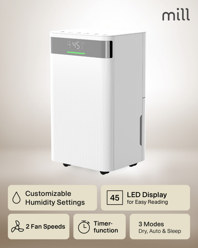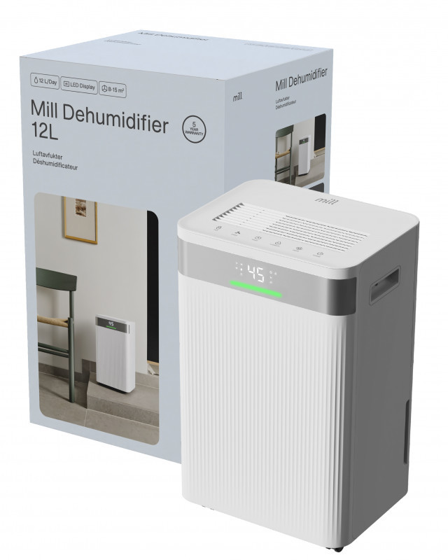 Mill Dehumidifier | MDH12 | Power 200 W | Suitable for rooms up to 8-15 m² | Water tank capacity 2 L | White