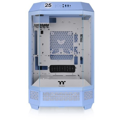 "Thermaltake The Tower 300. Form factor: Micro Tower, Type: PC, Product colour: Blue. Power supply location: Bottom. Side fans diameters supported: 120,140 mm, Rear fans diameters supported: 120,140 mm, Top fans installed: 2x 140 mm. Supported HDD sizes: 2.5,3.5"". Width: 342 mm, Depth: 281 mm, Height: 551 mm"\n"The Tower 300 Hydrangea Blue is an m-ATX case with a classic vertical case design and comes in an octagonal prism shape. It supports up to a 420mm AIO radiator on the right side and can accommodate up to eight 120mm/140mm fans. With a separately sold Chassis Stand Kit, users can enjoy a unique view with a special horizontal placement.