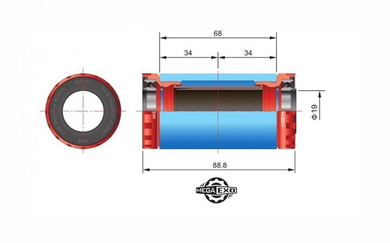 Miniklio velenas FSA MegaExo BB-4000 Road 19 mm