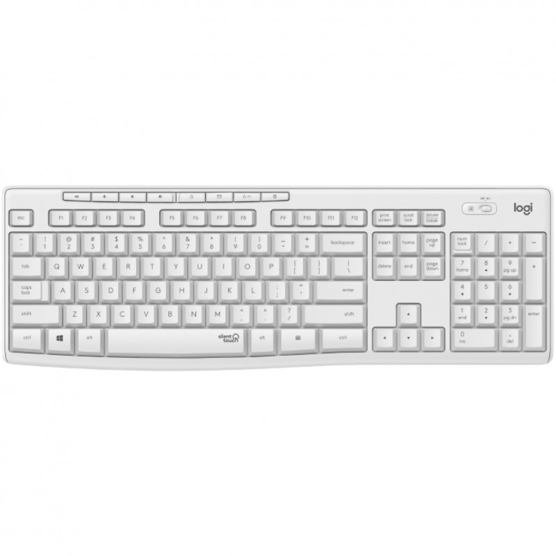 "Logitech MK295 Silent Wireless Combo. Keyboard form factor: Full-size (100%). Keyboard style: Straight. Connectivity technology: Wireless, Device interface: RF Wireless, Keyboard layout: QWERTY, Recommended usage: Office. Product colour: White. Mouse included"\n