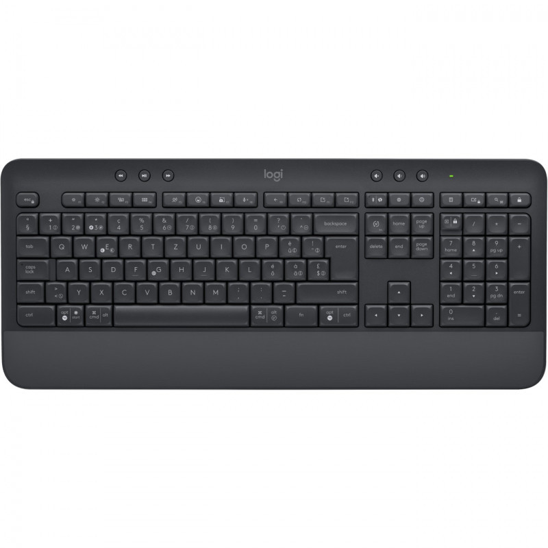 "Logitech Signature MK650 Combo for Business. Keyboard form factor: Full-size (100%). Keyboard style: Straight. Connectivity technology: Wireless, Device interface: Bluetooth, Keyboard key switch: Membrane, Keyboard layout: QWERTZ, Keyboard number of keys: 118. Wrist rest. Recommended usage: Office. Product colour: Graphite. Mouse included"\n