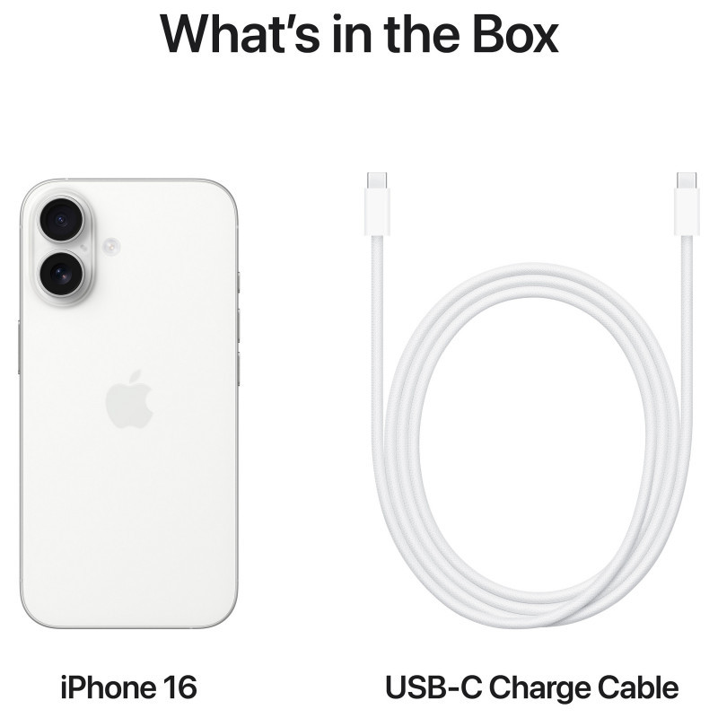 "Apple iPhone 16 128GB White. Display diagonal: 15.5 cm (6.1""), Display resolution: 2556 x 1179 pixels. Processor family: Apple, Processor model: A18. Internal storage capacity: 128 GB. Rear camera resolution (numeric): 48 MP, Rear camera type: Dual camera. SIM card capability: Dual SIM. Operating system installed: iOS 18. Product colour: White. Weight: 170 g"\n"iPhone 16