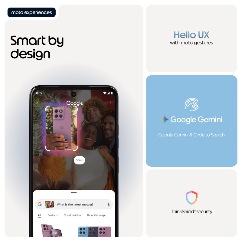 Introducing the moto g17, designed for those who create engaging content—and those who crave it. Capture brilliant shots from every angle and in any light with a 50MP Sony LYTIA™ 600 sensor(1), 5MP ultra-wide lens, and 32MP selfie cam(2). Create, edit, and multitask effortlessly with RAM Boost(3), tons of storage, and an octa-core processor. Power through your shoots and editing sessions with 55.8 hours of battery life(10) and fast TurboPower™ charging(8). Watch your favorite creators, reels, and videos on a sharp, vibrant 6.7""/6.72” Full HD+ display backed by stereo speakers and Dolby Atmos® sound. All this with a premium look-and-feel that’s built to last. The new moto g17 is a keeper in every way."