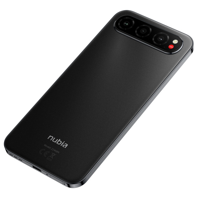 "Nubia Z2468N. Display diagonal: 17.2 cm (6.78""), Display resolution: 1224 x 2720 pixels. Processor frequency: 2.2 GHz, Processor family: Unisoc, Processor model: T8300. RAM capacity: 20 GB, Internal storage capacity: 256 GB. Rear camera resolution (numeric): 50 MP, Rear camera type: Triple camera. SIM card capability: Dual SIM. Operating system installed: Android 15. Battery capacity: 5000 mAh. Product colour: Black. Weight: 172 g"\n