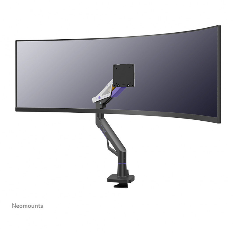 The NewStar desk mount, model FPMA-D860DBLACK is a tilt-, swivel and rotatable desk mount for flat screens up to 27”. This mount is a great choice for space saving placement on desks using a desk stand.